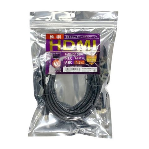 日本トラストテクノロジー スリムHDMIケーブル 極細・取り回しに便利 最大Full HD 1080P対応 10m JTHDMI100-SLBK 【同梱不可】[▲][AS]