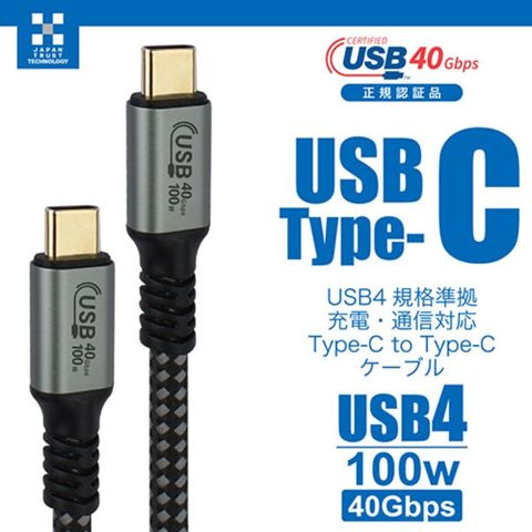 日本トラストテクノロジー USB4対応100W Type-Cケーブル USB-IF認証 PD充電対応 ストレート 1m JTU4S100-CC 【同梱不可】[▲][AS]