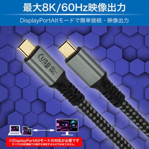 DisplayPortAltモードに対応した機器同士の接続で最大8K/60Hzの映像出力に対応。