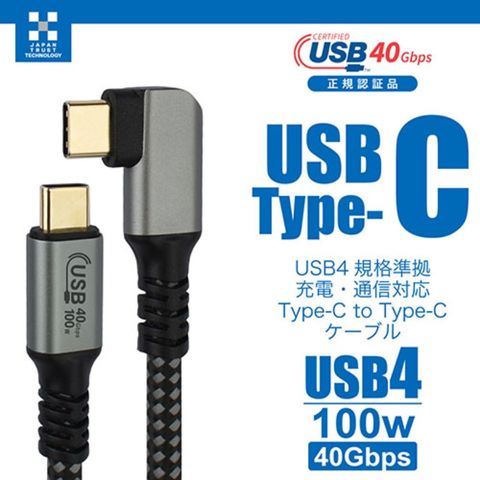 日本トラストテクノロジー USB4対応100W Type-Cケーブル USB-IF認証 PD充電対応 L型コネクタ 1m JTU4L100-CC 【同梱不可】[▲][AS]