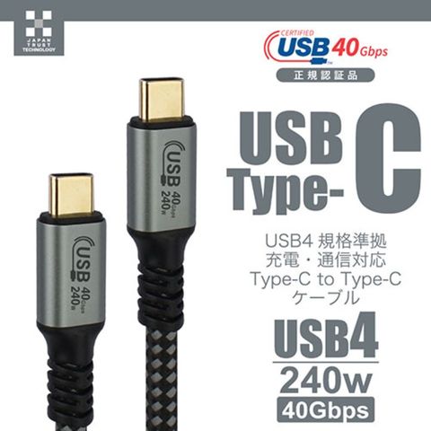 日本トラストテクノロジー USB4対応240W Type-Cケーブル USB-IF認証 PD EPR充電対応 ストレート 1m JTU4S240-CC 【同梱不可】[▲][AS]