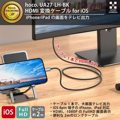 hoco. UA27 HDMI 変換ケーブル for iOS iPhone/iPad用 最大1920×1080P出力対応 ケーブル長2.0m UA27-LH-BK 【同梱不可】[▲][AS]
