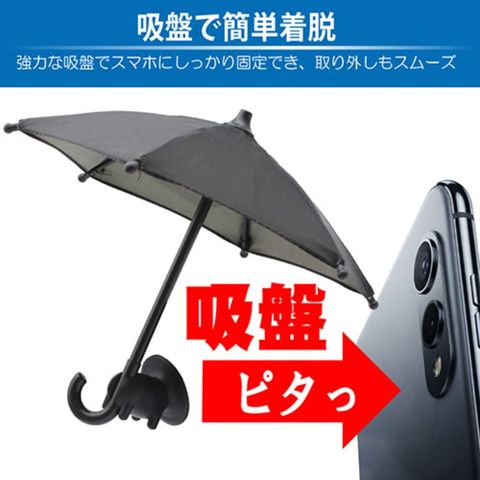 突然の雨から大切なスマホを濡らしたくない時や、日差しの強い場所で画面が見えにくい時など、あらゆるシーンで活躍するミニサイズのパラソルです。