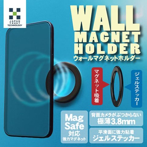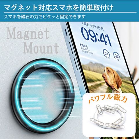 「WALL MAGNET HOLDER」でスマホを壁面(壁、鏡、キッチン、洗面所、寝室、自動車の車内など)に手軽に固定できるマグネットリングです。