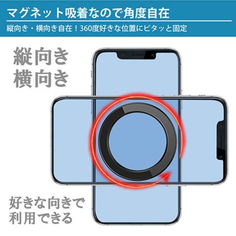 マグネット対応スマホを簡単取付けできるので、片手でサッと着脱できます。