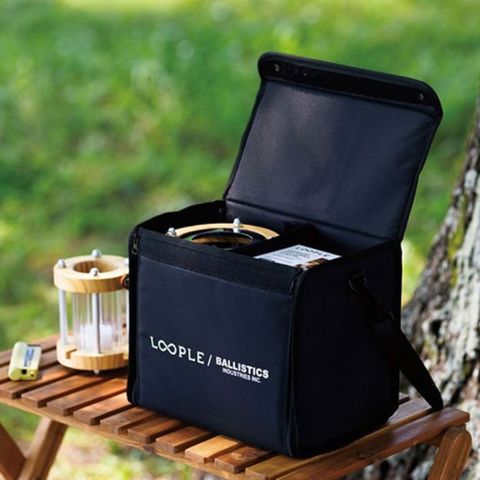 キャンドルランタン「ウッド」の保管、輸送時の保護を目的とした、ループル × バリスティクス ダブルネームのケースです。