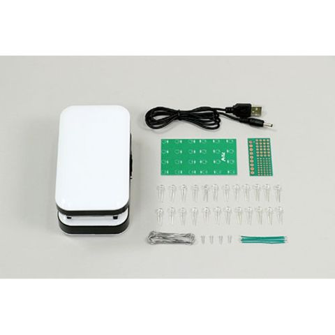 セット内容:本体×1、USBケーブル×1、LED基板×1、練習用基板×1、LED×24、はんだ×1、ねじ×4、練習用導線×5