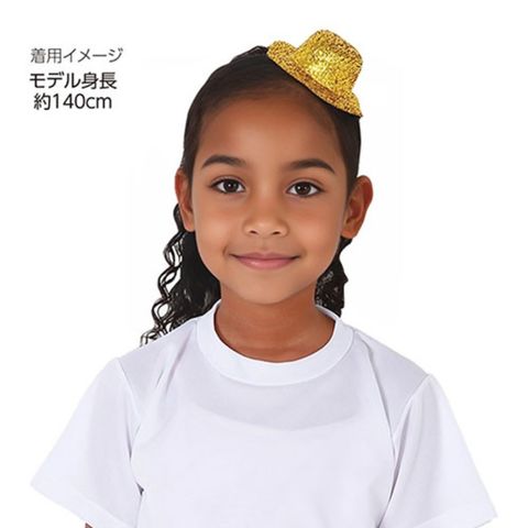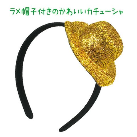 キラキラのミニ帽子がちょこんと乗った、かわいらしい子供向けカチューシャです。