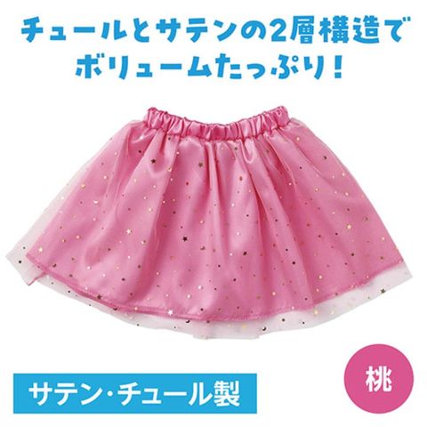 キラキラ輝くチュールと光沢感のあるサテンを重ねた2層構造で、ボリュームたっぷりのスカートです。
