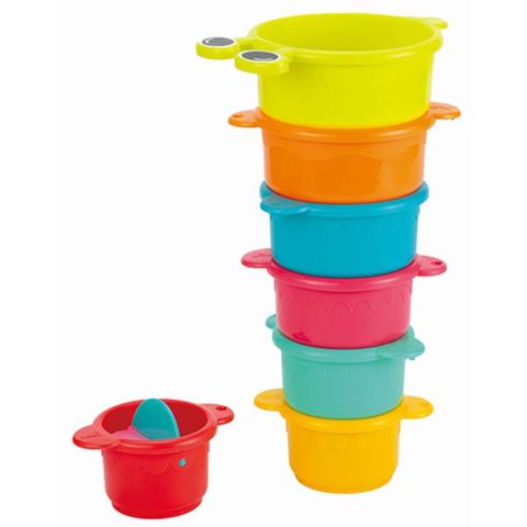 横に並べてつなげることができる、水車付きのシャワーカップです。