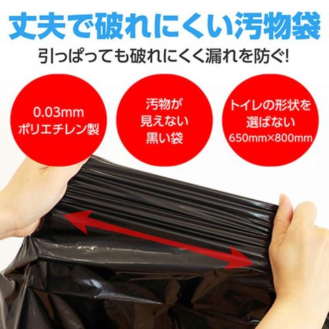 ・材質 : 凝固剤 : 高吸水性樹脂、ポリ袋45L : PE、臭いを通さない袋 : PE