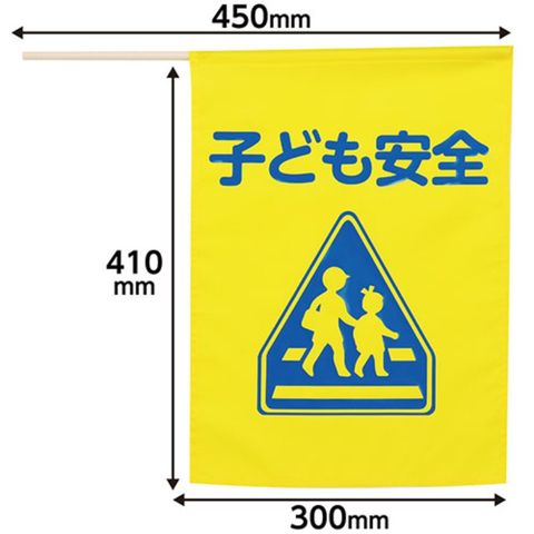 子どもたちの安全な横断を守るために設計された、イラスト入り「子ども安全」横断旗です。