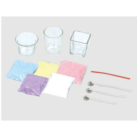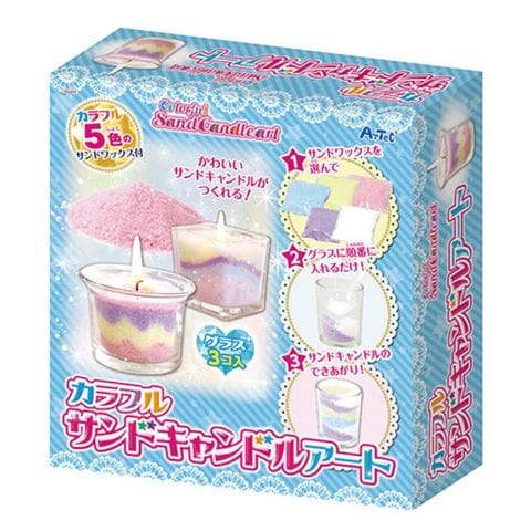 グラス×3、サンドワックス(青、黄、ピンク、紫、白)各50g×5、キャンドル芯×3、デザイン棒×1、説明書×1