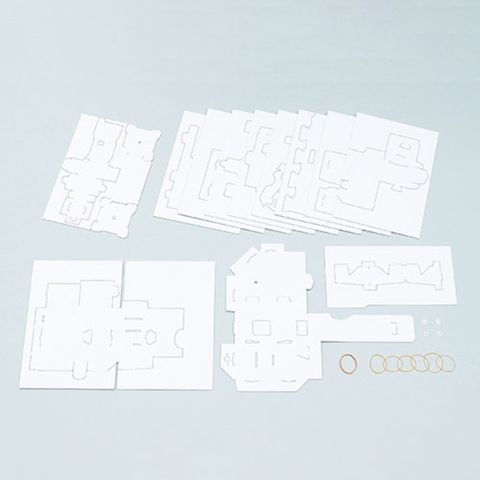 セット内容 : 段ボールパーツ×11、輪ゴム細×6、輪ゴム太×1、スナップロック×2