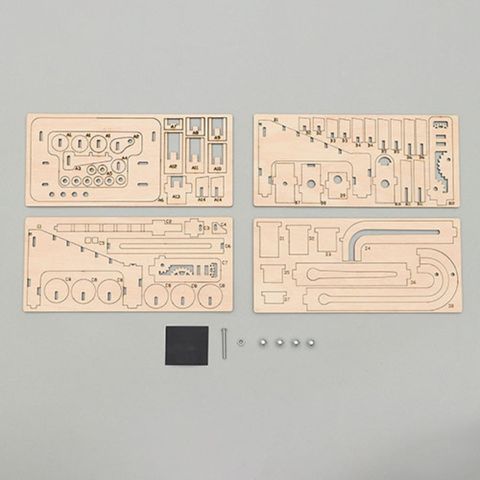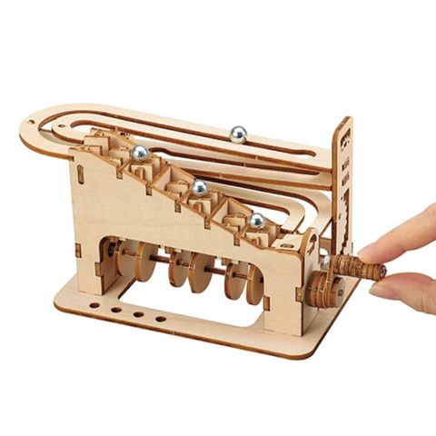 ハンドルをまわすと鉄球がエスカレーターを昇ってコースターを転がる!