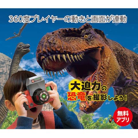 360度VRで、大迫力の恐竜と遭遇し、写真を撮影する商品です。