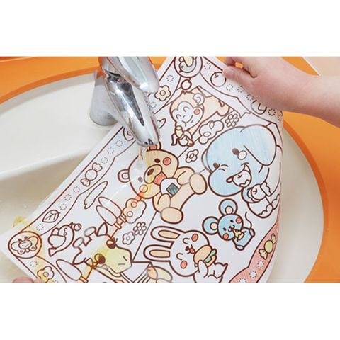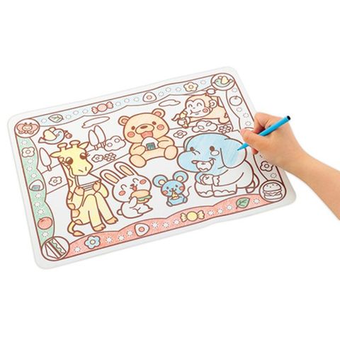 水で洗えば何回でも使えるシリコン製のぬりえシートです。