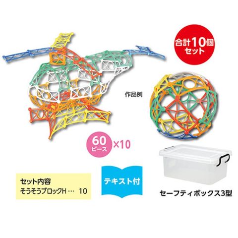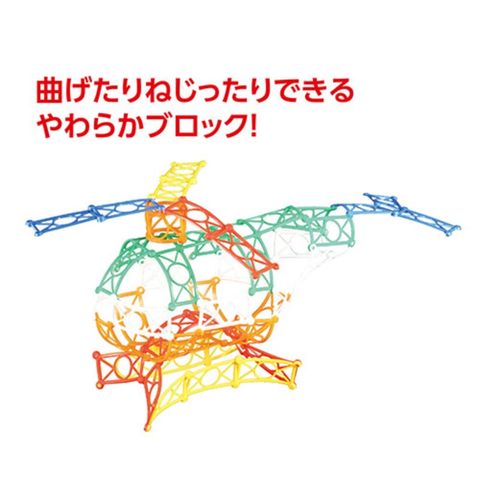 柔らかいプラスチック製のブロックは平面から立体までさまざまな作品が作れ、子どもの発想力・創造力を自然に育てます。