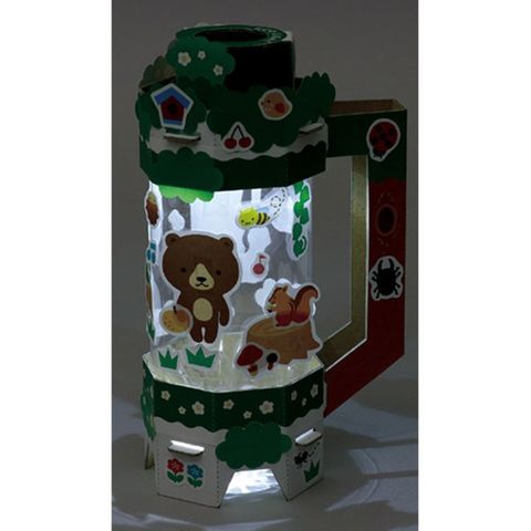 セット内容:ボディ(上)×1、スペーサー×1、フタ×1、ライトカバー×1、ソーラーLEDライト×1、底板×1、ボディ(下)×1、ハンドル×1、森のどうぶつデコシート×1