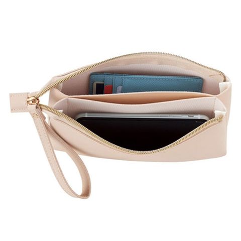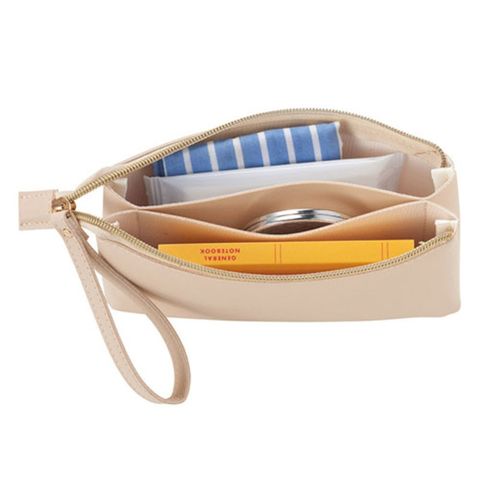 ポーチが2つ連なった見た目のポーチは、3カ所に小物を分けて収納できる仕様です。