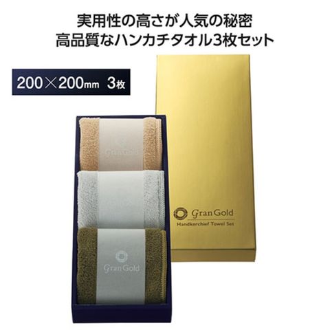 グランゴールド ソフトハンカチタオル 3枚組 200×200mm 豪華な見栄えのゴールド箱入 SP-36498 【同梱不可】[▲][AS]