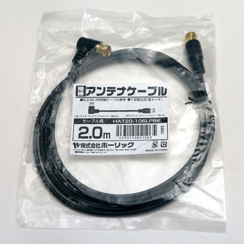 HORIC 極細アンテナケーブル 2m ブラック 両側F型差込式コネクタ L字/ストレートタイプ HAT20-106LPBK 家電 映像関連【同梱不可】[▲][AS]