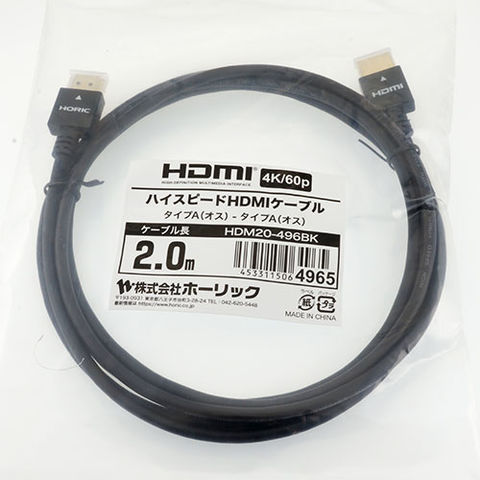 ホーリック HDMIケーブル 2m ブラック HDM20-496BK 【同梱不可】[▲][AS]