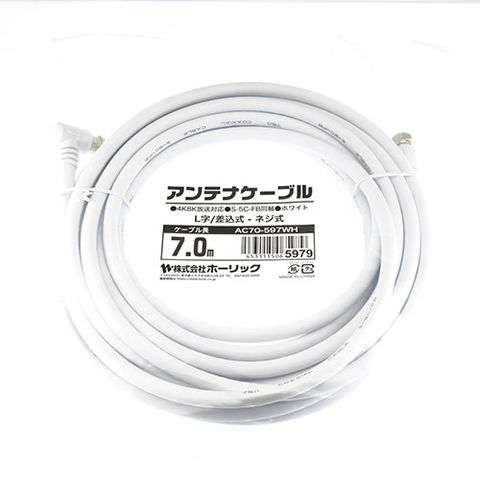 ホーリック アンテナケーブル 7m ホワイト L字差込式/ネジ式コネクタ AC70-597WH 【同梱不可】[▲][AS]