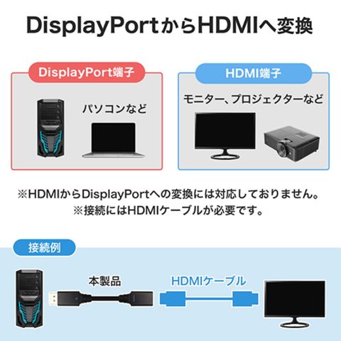 ※単方向信号設計のため、HDMIからDisplayPortへの変換には対応しておりません。