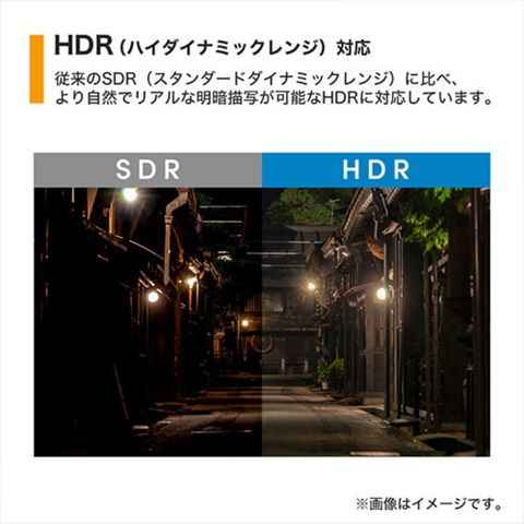 従来のSDR(スタンダードダイナミックレンジ)に比べ、より自然でリアルな明暗描写が可能です。