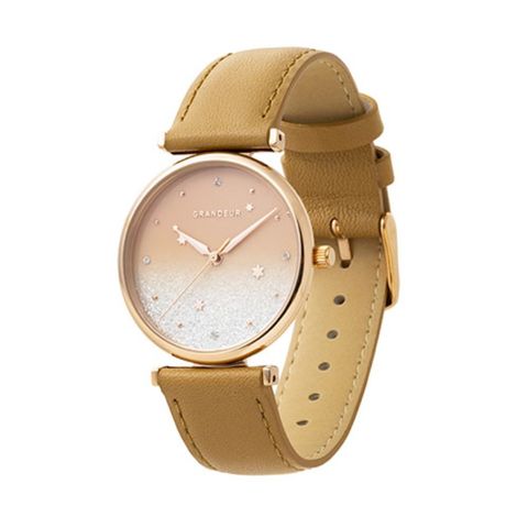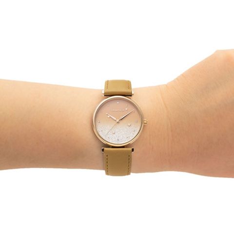 ・ピンクのグラデーションに星を散りばめ、キャメル色のベルトにピンクゴールドのケースでノスタルジックな夕暮れ時を表現。