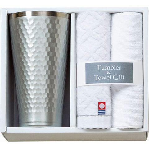 セット内容 : タンブラー(φ8×14.5cm・420ml)・今治ウォッシュタオル(28×30cm)・マイクロファイバークロス(25×25cm)×各1