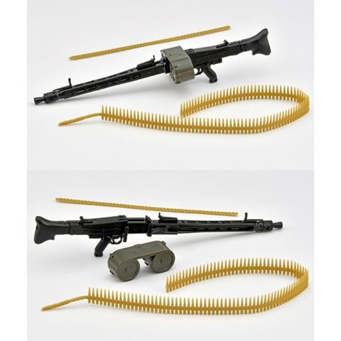 | LASW07 リトルアーモリー 『ストライクウィッチーズ ROAD to BERLIN』MG42S(エイラ) 精巧なミニチュア銃器をラインナップするリトルアーモリーより、TVアニメ『第501統合戦闘航空団 ストライクウィッチーズ ROAD to BERLIN』の劇中ガンがプラモデル化! 本製品は、エイラ・イルマタル・ユーティライネンが使うマシンガン『MG42S』の組み立て式1/12スケールモデルです。品番[LASW02]でリリースしたものとは異なり、1挺入りで新たに弾帯パーツが付属します。 パッケージとイラストカードには、サトウミチオ氏原画の描き下ろしイラストを使用。イラストカード裏面には、世界観設定・軍事考証の鈴木貴昭氏による書き下ろし銃器解説を掲載。イラストカードは、魔方陣が描かれたクリアカードと組み合わせることで、模型用のディスプレイとして活用することが可能です。いずれも「ストライクウィッチーズ」の世界観をイメージした、こだわりのデザインとなっています。 |