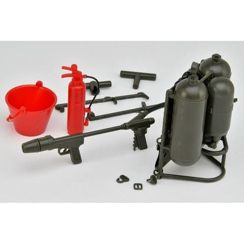 | LA101 リトルアーモリー 火炎放射器M2タイプ タンク・バックシート・接続パイプ、放射器など各部を別パーツで再現。 さらに、可動フィギュアの背中との接続し易い3mm径の取り付けパーツも付属します。 アクセサリーパーツとして消火器・バケツを用意しました。 |