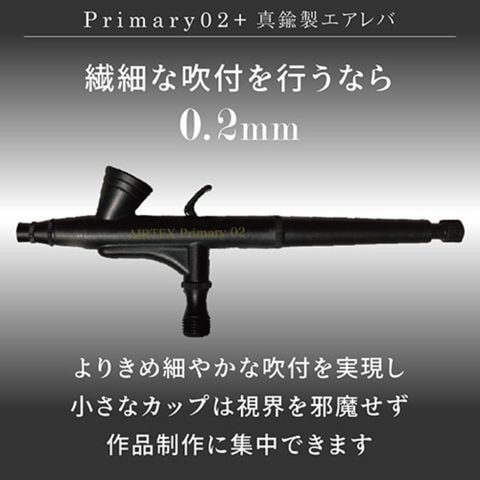 エアテックス AIRTEX エアブラシ Primary02+真鍮製エアレバ 0.2mm 繊細な吹付ができる ブラック PR02 【同梱不可】[▲][AS]