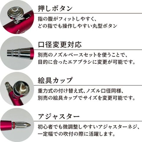 初めての一本から、自分なりに変えていけるエアブラシです。