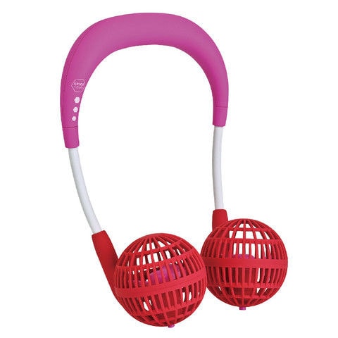 【今期在庫限り】【キッズ用】首かけ 扇風機 ハンズフリー ラズベリー ファン 電池式 単4電池 2本 ハンディ 首 携帯 ヘッドホン ダブルファン ミニ ハンズフリー ポータブルファン ポータブル 持ち運び 軽量 首掛けタイプ DF204K-RB