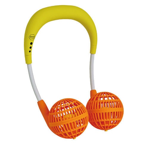 【今期在庫限り】【キッズ用】首かけ 扇風機 ハンズフリー イエロー ファン 電池式 単4電池 2本 ハンディ 首 携帯 ヘッドホン ダブルファン ミニ ハンズフリー ポータブルファン ポータブル 持ち運び 軽量 首掛けタイプ DF204K-YE