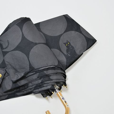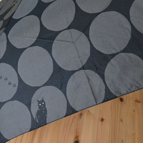 大きい水玉の中に猫&足あとが大人のかわいさの、MKNブランドで一番人気の雨傘です。