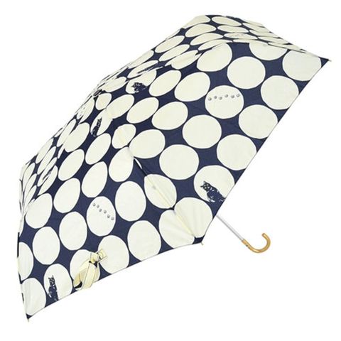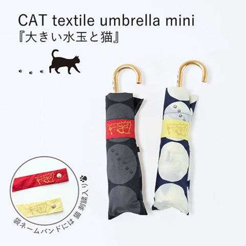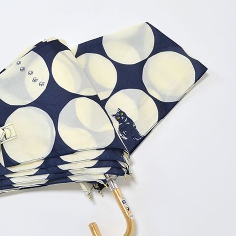 大きい水玉の中に猫&足あとが大人のかわいさの、MKNブランドで一番人気の雨傘です。