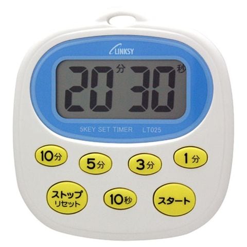 カウントダウン機能(10秒から99分50秒まで設定可能)、カウントアップ機能(最大99分59秒までの計測可能)付き。