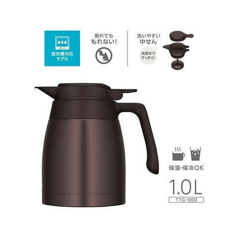 【THERMOS/サーモス】ステンレスポット 1L ブラウン 食洗機対応 丸洗いOK 魔法びん構造 保冷 保温 卓上ポット TTG-1000 BW 【同梱不可】[▲][KM]