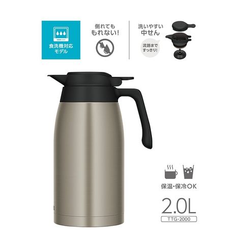 【THERMOS/サーモス】ステンレスポット 2L ステンレス 食洗機対応 丸洗いOK 魔法びん構造 保冷 保温 卓上ポット TTG-2000 S 【同梱不可】[▲][KM]