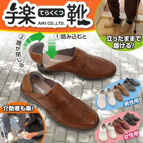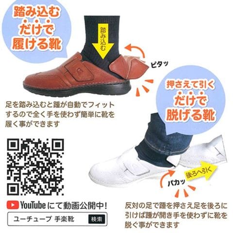 ●手楽靴(てらくくつ)は、手を使わずに立ったまま履ける・立ったまま脱げる画期的な靴です。