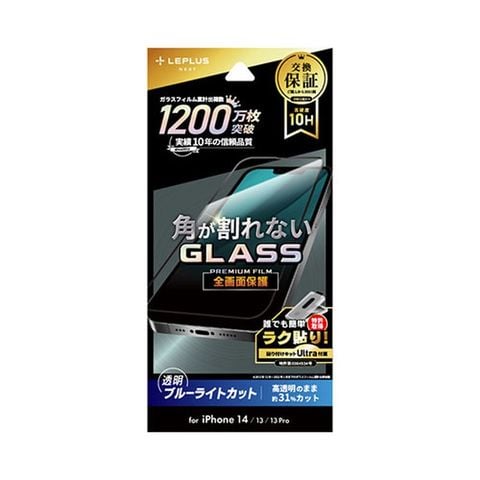 LEPLUS NEXT iPhone 14/13/13 Pro ガラスフィルム GLASS PREMIUM FILM 全画面保護 ソフトフレーム ブルーライトカット LN-IM22FGBS 【同梱不可】[▲][AS]