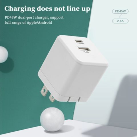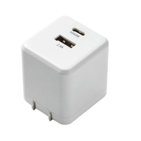 ●GaN(窒化ガリウム) 使用、最大出力45WのType-A、Type-C(PD対応)のUSB充電アダプターです。