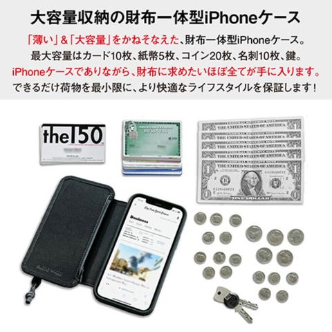 薄い財布・大容量財布の良いとこ取りをした財布一体型iPhoneケースです。