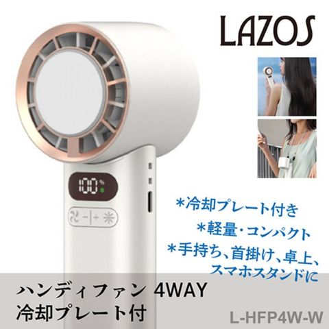 Lazos ハンディファン4WAY冷却プレート付 4種の使い分け(ハンディ・首掛け・卓上・スマホスタンド) L-HFP4W-W 【同梱不可】[▲][AS]