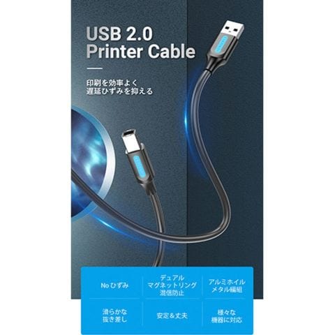 VENTION USB 2.0 A Male to B Maleケーブル PVC Type 3m ブラック CO-7224 【同梱不可】[▲][AS]