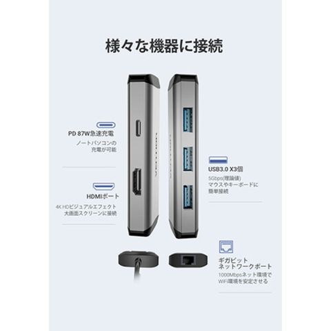 方向 : Type-CからHDMI, USB, RJ45, PD